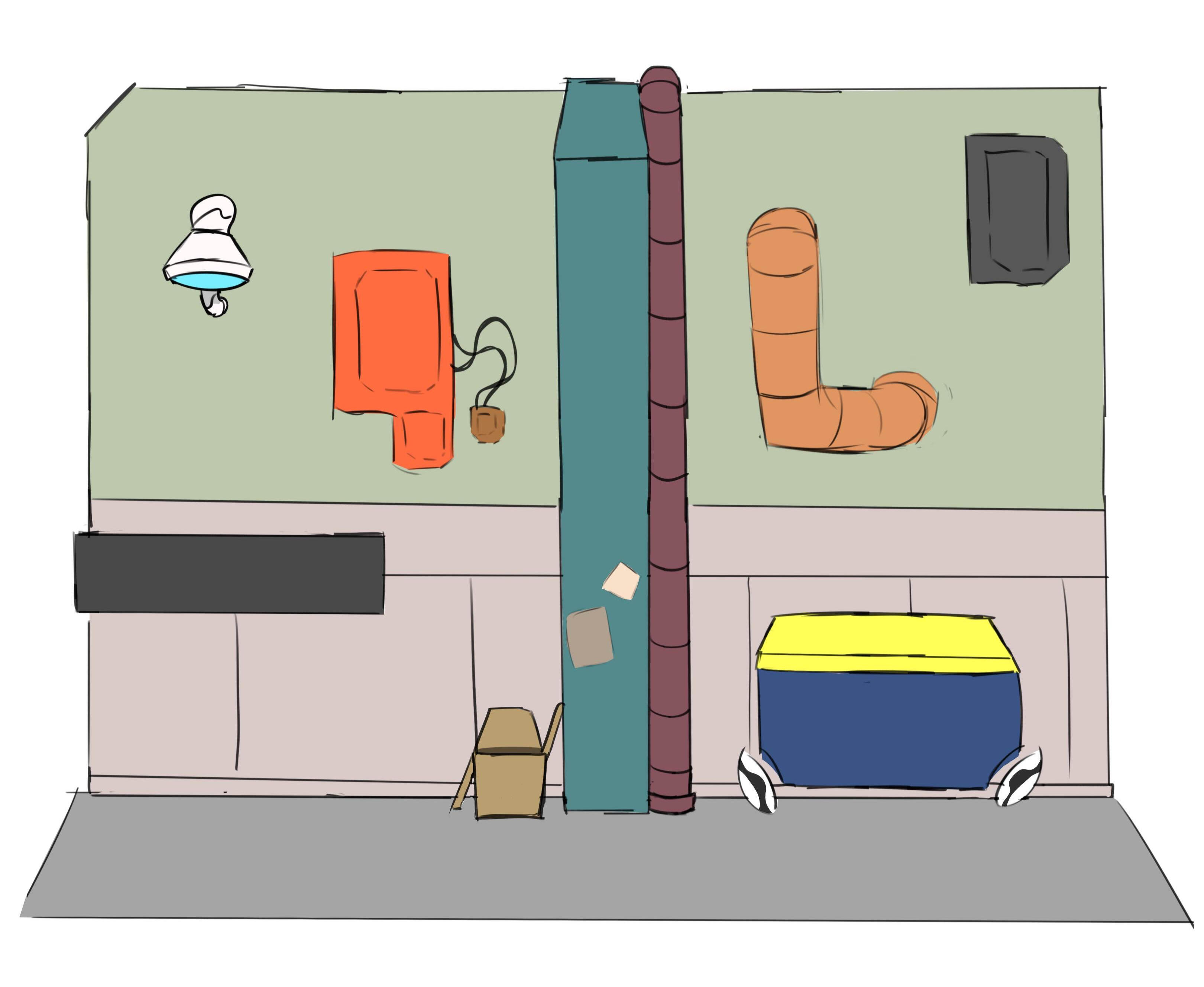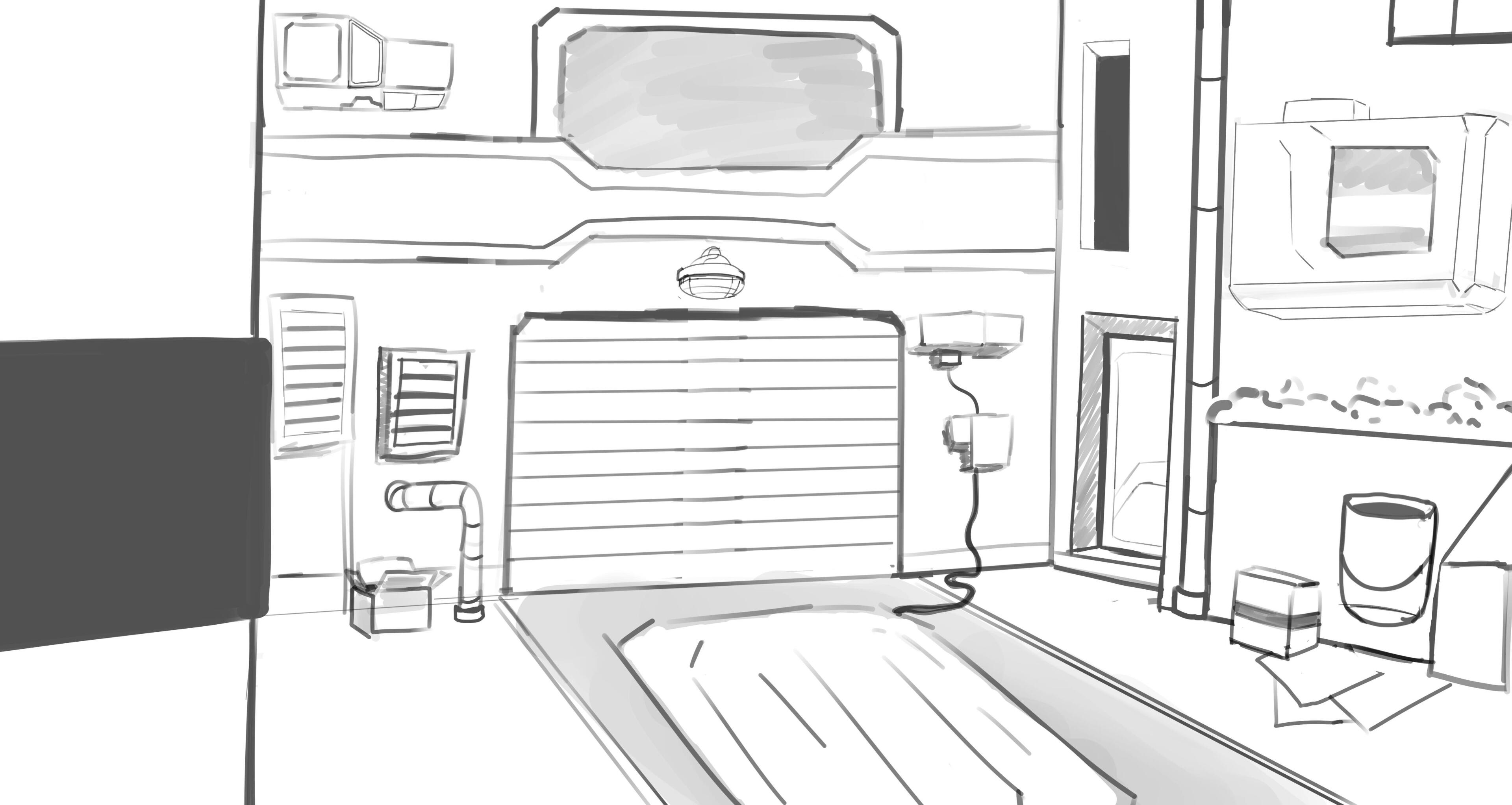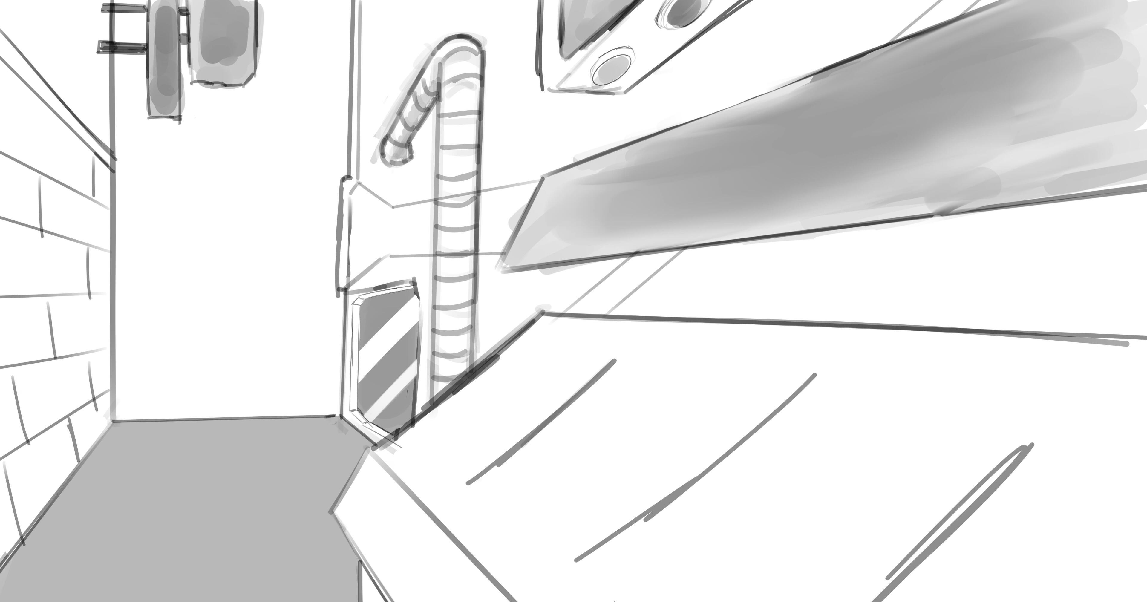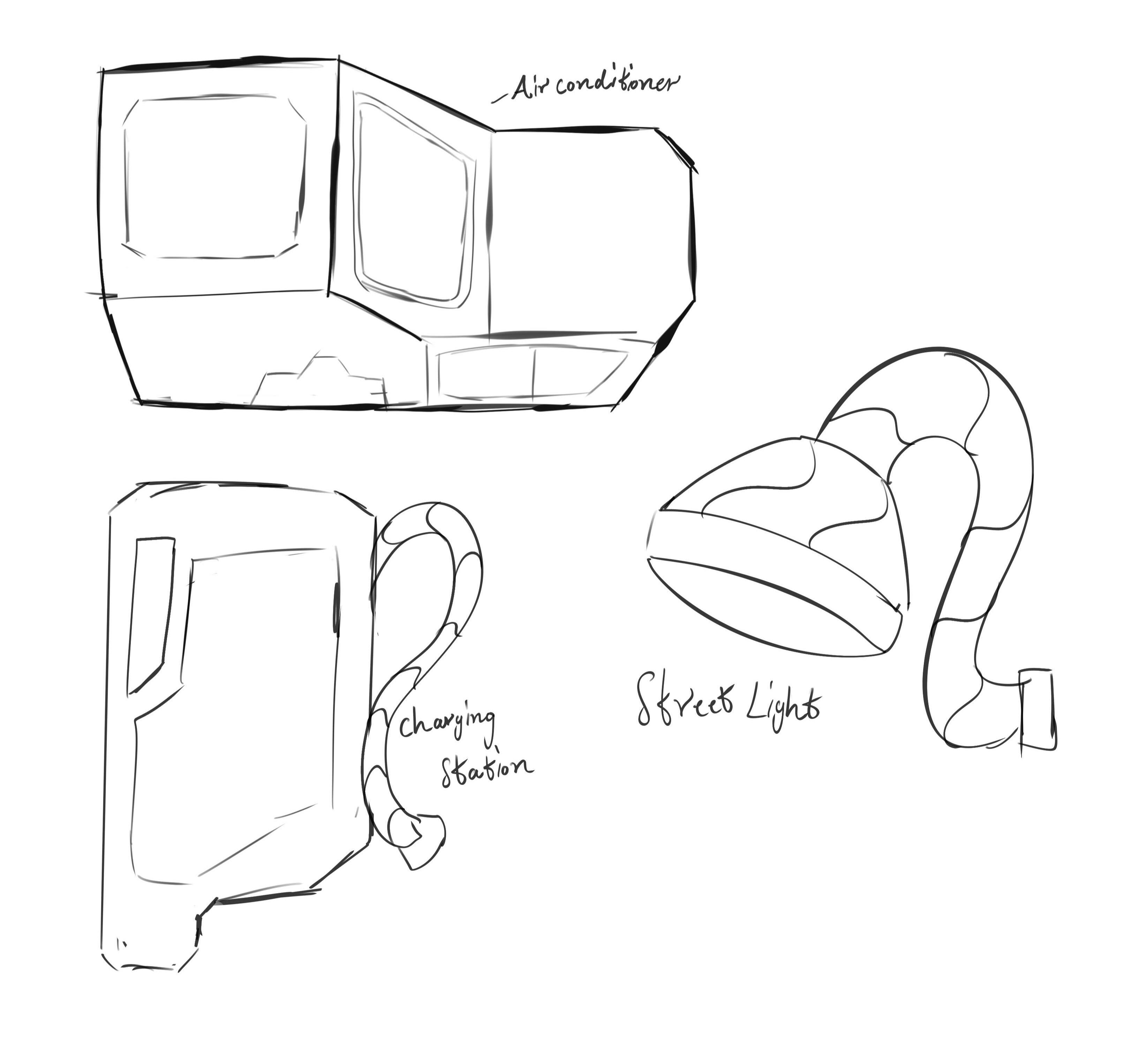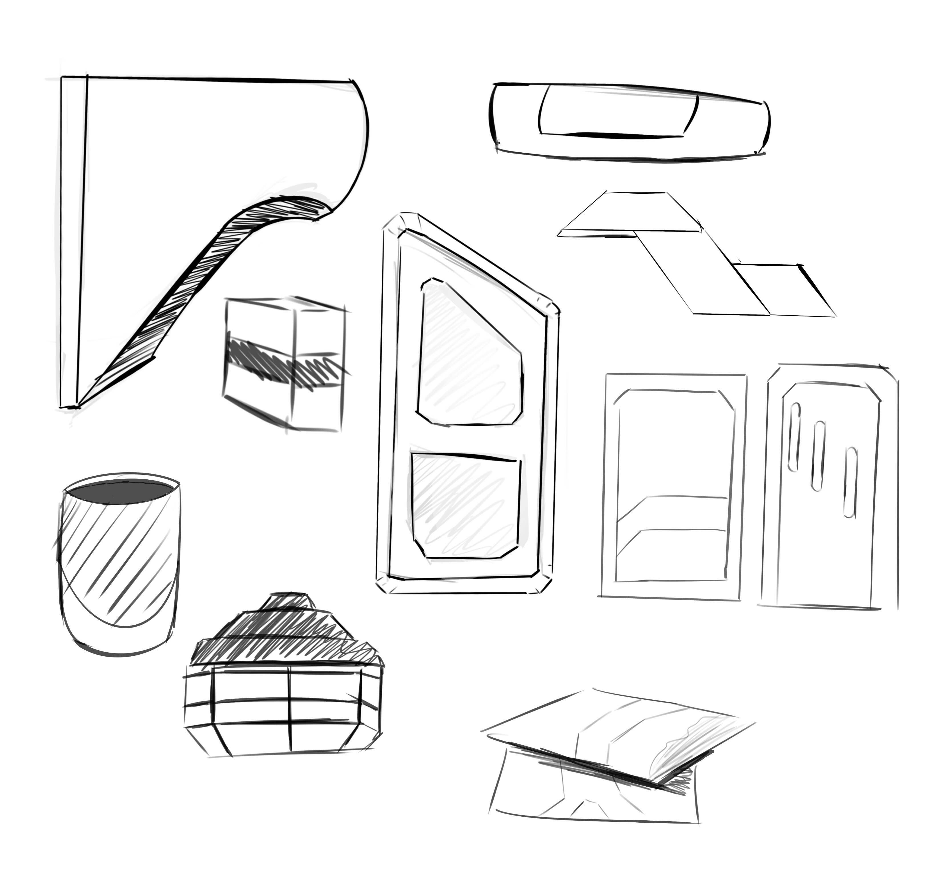 First set of sketches of props, layout and buildings. This was very early in pre production.